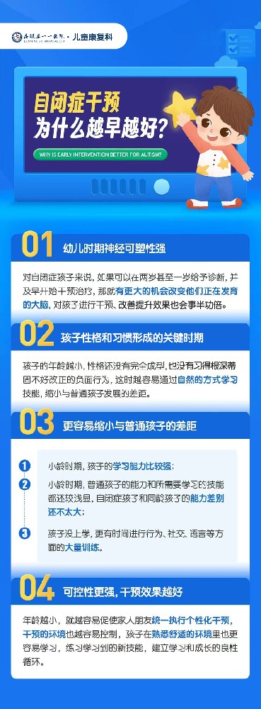 自闭症特征通常在 3 岁之前就存在,早期诊断是早期干预的关键,可大大改善结果。3~5岁是自闭症干预黄金期,如果您的孩子表现出自···