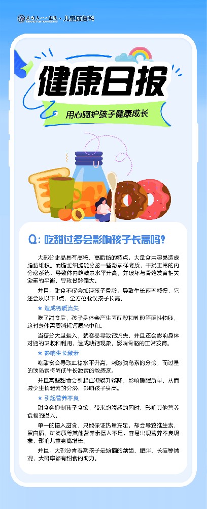 吃甜过多会影响孩子长高吗?大部分甜品具有高糖、高脂肪的特点,大量食用容易造成脂肪堆积。而脂肪细胞能分泌一些激素样物质,干扰···