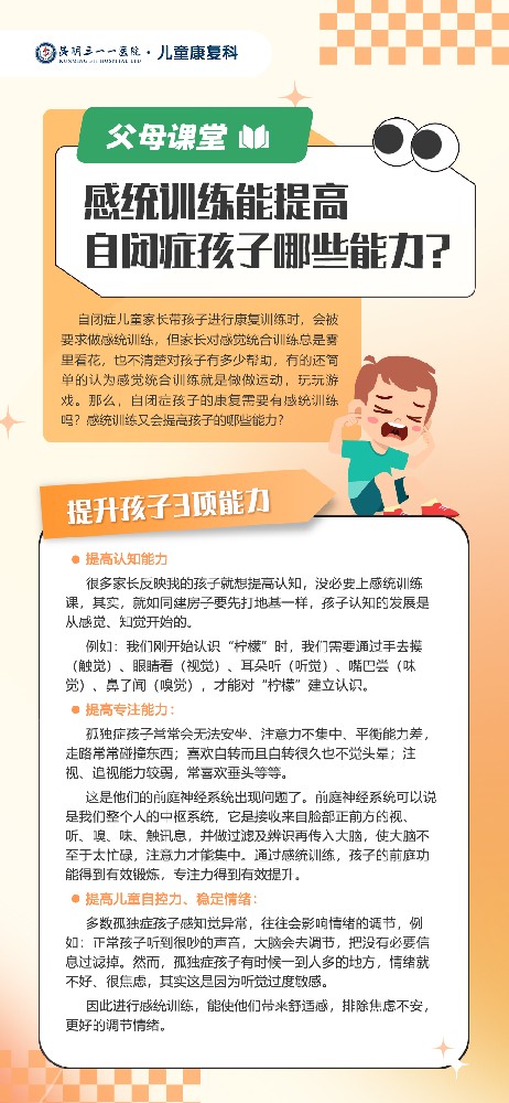 多数孤独症孩子感知觉异常,往往会影响情绪的调节,例如:正常孩子听到很吵的声音,大脑会去调节,把没有必要信息过滤掉。然而,孤···